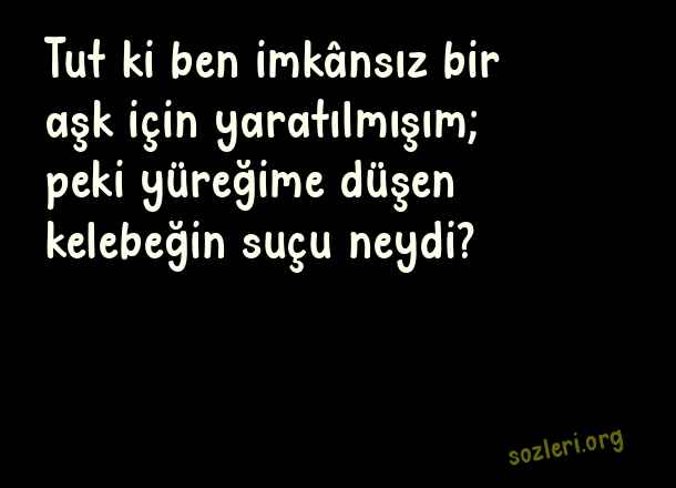 Tut ki ben imkânsız bir aşk için yaratılmışım; peki yüreğime düşen kelebeğin suçu neydi? ( En Güzel Aşk Dolu Sözler 2023 )