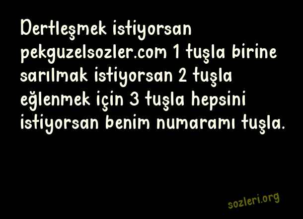 Dertleşmek istiyorsan 1 tuşla birine sarılmak istiyorsan 2 tuşla eğlenmek için 3 tuşla hepsini istiyorsan benim numaramı tuşla. ( Aşk Espirileri )