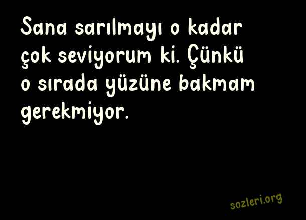 Sana sarılmayı o kadar çok seviyorum ki. Çünkü o sırada yüzüne bakmam gerekmiyor. ( Aşk Espirileri )