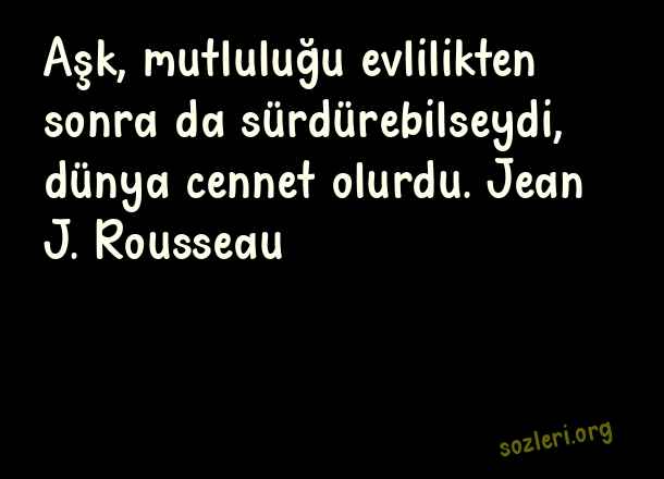 Aşk, mutluluğu evlilikten sonra da sürdürebilseydi, dünya cennet olurdu. Jean J. Rousseau ( Aşk İle İlgili Güzel Sözler )