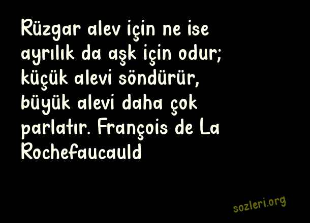 Rüzgar alev için ne ise ayrılık da aşk için odur; küçük alevi söndürür, büyük alevi daha çok parlatır. François de La Rochefaucauld ( Aşk İle İlgili Güzel Sözler )