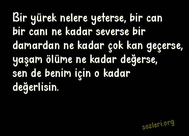 Bir yürek nelere yeterse, bir can bir canı ne kadar severse bir damardan ne kadar çok kan geçerse, yaşam ölüme ne kadar değerse, sen de benim için o kadar değerlisin. ( Aşk İtiraf )