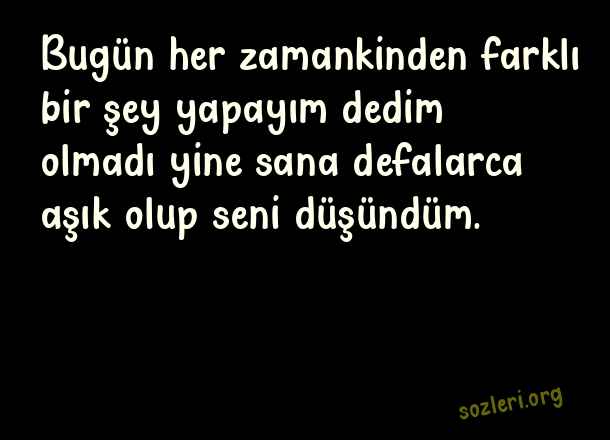 Bugün her zamankinden farklı bir şey yapayım dedim olmadı yine sana defalarca aşık olup seni düşündüm. ( Aşk İtiraf )