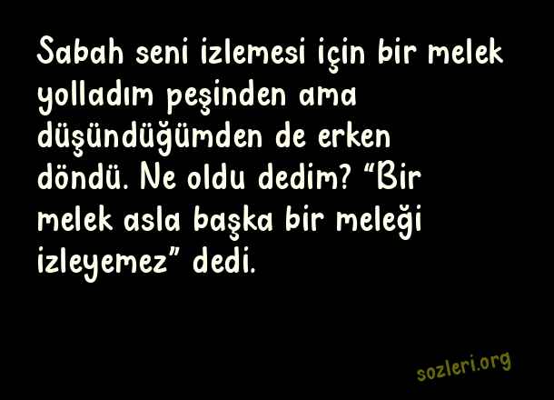 Sabah seni izlemesi için bir melek yolladım peşinden ama düşündüğümden de erken döndü. Ne oldu dedim? “Bir melek asla başka bir meleği izleyemez” dedi. ( Aşk İtiraf )
