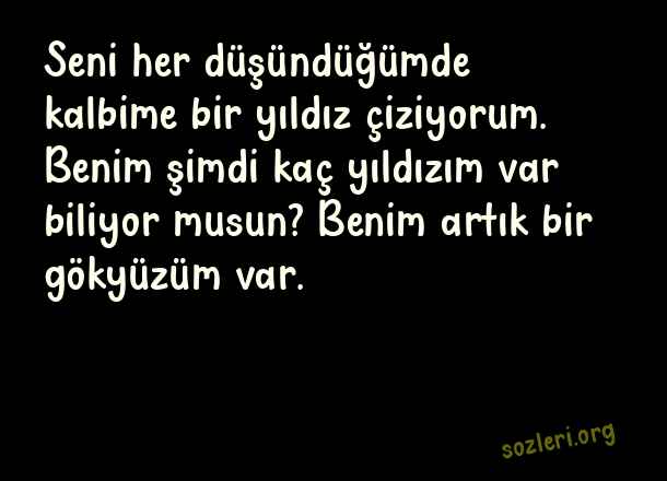 Seni her düşündüğümde kalbime bir yıldız çiziyorum. Benim şimdi kaç yıldızım var biliyor musun? Benim artık bir gökyüzüm var. ( Aşk İtiraf )