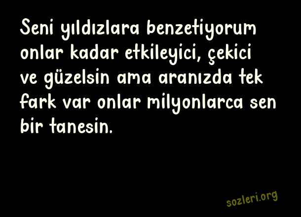 Seni yıldızlara benzetiyorum onlar kadar etkileyici, çekici ve güzelsin ama aranızda tek fark var onlar milyonlarca sen bir tanesin. ( Aşk İtiraf )