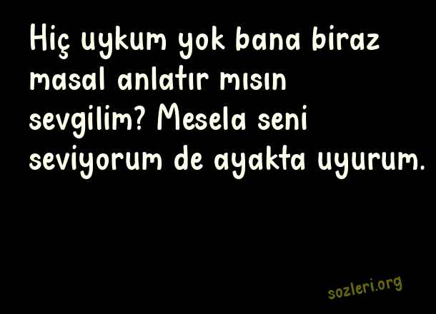 Hiç uykum yok bana biraz masal anlatır mısın sevgilim? Mesela seni seviyorum de ayakta uyurum. ( Aşk Kavanozu )