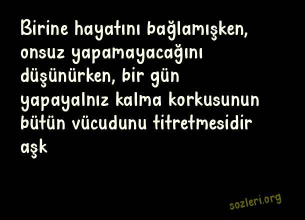 Birine hayatını bağlamışken, onsuz yapamayacağını düşünürken, bir gün yapayalnız kalma korkusunun bütün vücudunu titretmesidir aşk… ( Aşk Nedir )