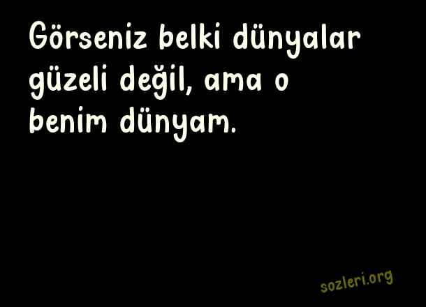 Görseniz belki dünyalar güzeli değil, ama o benim dünyam. ( Aşk Romanlarından Alıntılar )