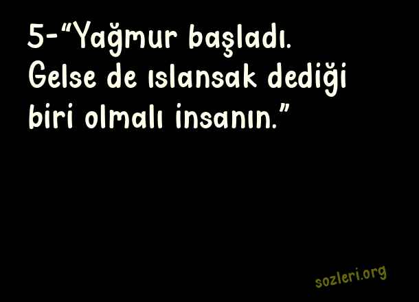 5-“Yağmur başladı. Gelse de ıslansak dediği biri olmalı insanın.” ( En Güzel 20 Aşk Sözü )