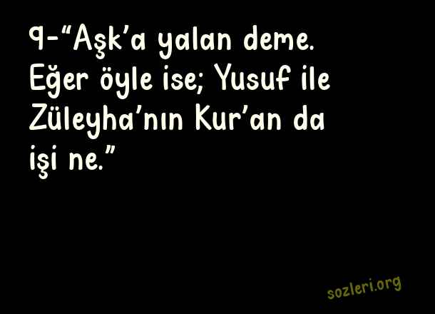 9-“Aşk’a yalan deme. Eğer öyle ise; Yusuf ile Züleyha’nın Kur’an da işi ne.” ( En Güzel 20 Aşk Sözü )