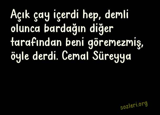 Açık çay içerdi hep, demli olunca bardağın diğer tarafından beni göremezmiş, öyle derdi. Cemal Süreyya ( Etkileyici Aşk )