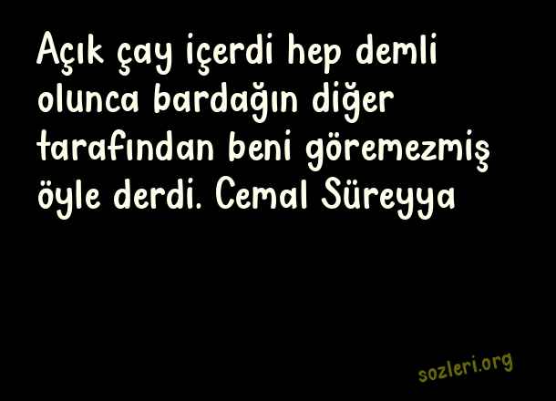 Açık çay içerdi hep demli olunca bardağın diğer tarafından beni göremezmiş öyle derdi. Cemal Süreyya ( Kalbe Dokunan Aşk )