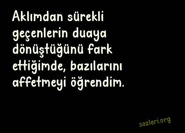 Aklımdan sürekli geçenlerin duaya dönüştüğünü fark ettiğimde, bazılarını affetmeyi öğrendim. ( Aşkım Kapışmak )