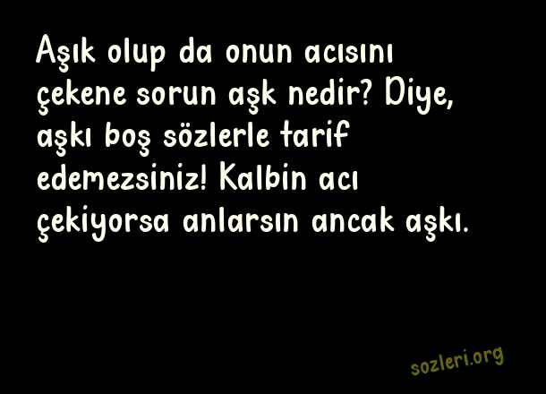 Aşık olup da onun acısını çekene sorun aşk nedir? Diye, aşkı boş sözlerle tarif edemezsiniz! Kalbin acı çekiyorsa anlarsın ancak aşkı. ( Aşk Dolu Mesajlar )
