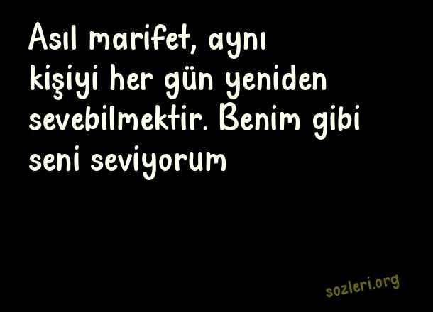 Asıl marifet, aynı kişiyi her gün yeniden sevebilmektir. Benim gibi seni seviyorum… ( En Güzel Aşk Dolu Sözler 2023 )