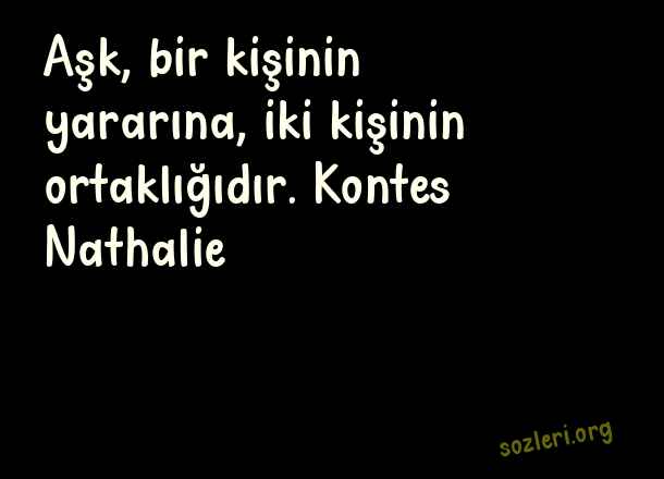 Aşk, bir kişinin - Özlü Aşk Sözleri .. Aşk, bir kişinin yararına, iki kişinin ortaklığıdır. Kontes Nathalie ( Özlü Aşk )