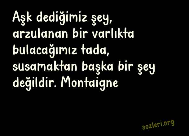 Aşk dediğimiz şey, arzulanan bir varlıkta bulacağımız tada, susamaktan başka bir şey değildir. Montaigne ( Aşk İle İlgili Güzel Sözler )