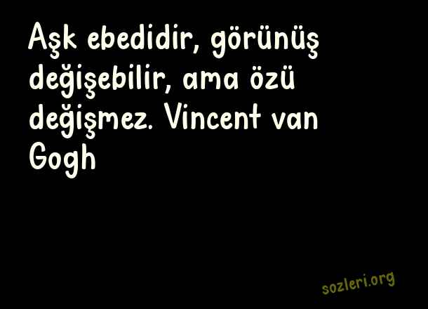 Aşk ebedidir, görünüş - Sonsuz Aşk Sözleri .. Aşk ebedidir, görünüş değişebilir, ama özü değişmez. Vincent van Gogh ( Sonsuz Aşk )