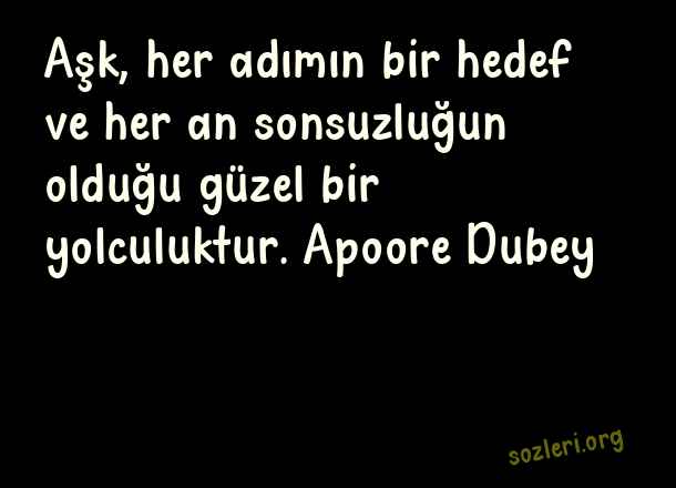 Aşk, her adımın bir hedef ve her an sonsuzluğun olduğu güzel bir yolculuktur. Apoore Dubey ( Sonsuz Aşk )