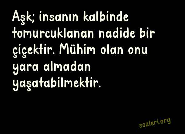 Aşk; insanın kalbinde tomurcuklanan nadide bir çiçektir. Mühim olan onu yara almadan yaşatabilmektir. ( Aşk Nedir )