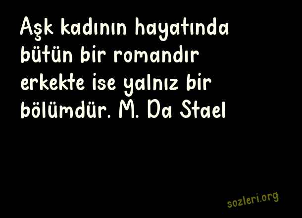 Aşk kadının hayatında - Tumblr Aşk Sözleri .. Aşk kadının hayatında bütün bir romandır erkekte ise yalnız bir bölümdür. M. Da Stael ( Tumblr Aşk )