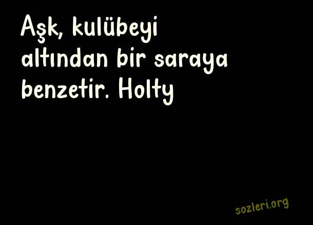 Aşk, kulübeyi altından - Aşk İle İlgili Güzel Sözler .. Aşk, kulübeyi altından bir saraya benzetir. Holty ( Aşk İle İlgili Güzel Sözler )