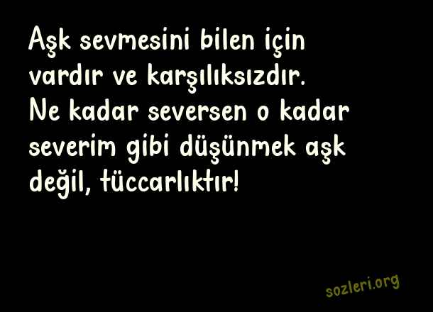 Aşk sevmesini bilen için vardır ve karşılıksızdır. Ne kadar seversen o kadar severim gibi düşünmek aşk değil, tüccarlıktır! ( Klasik Aşk )