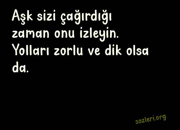 Aşk sizi çağırdığı - Mükemmel Aşk Sözleri .. Aşk sizi çağırdığı zaman onu izleyin. Yolları zorlu ve dik olsa da. ( Mükemmel Aşk )