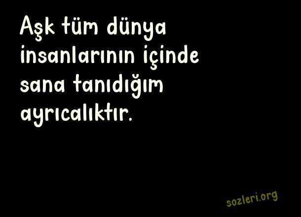 Aşk tüm dünya - Farklı Aşk Sözleri .. Aşk tüm dünya insanlarının içinde sana tanıdığım ayrıcalıktır. ( Farklı Aşk )
