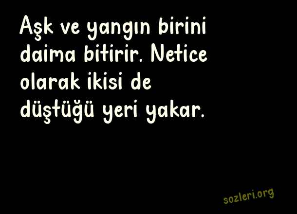 Aşk ve yangın - Aşk Sözleri .. Aşk ve yangın birini daima bitirir. Netice olarak ikisi de düştüğü yeri yakar. ( Aşk )