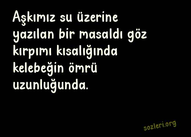 Aşkımız su üzerine yazılan bir masaldı göz kırpımı kısalığında kelebeğin ömrü uzunluğunda. ( Bitmiş Aşk )