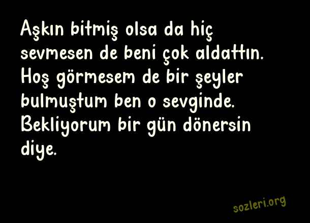 Aşkın bitmiş olsa da hiç sevmesen de beni çok aldattın. Hoş görmesem de bir şeyler bulmuştum ben o sevginde. Bekliyorum bir gün dönersin diye. ( Bitmiş Aşk )