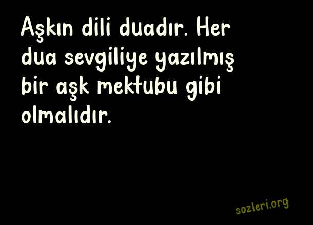 Aşkın dili duadır. Her dua sevgiliye yazılmış bir aşk mektubu gibi olmalıdır. ( Sıradışı Aşk )