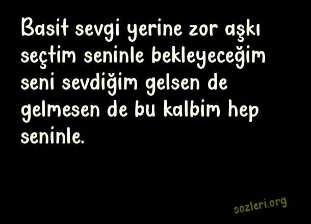 Basit sevgi yerine zor aşkı seçtim seninle bekleyeceğim seni sevdiğim gelsen de gelmesen de bu kalbim hep seninle. ( Damar Aşk )