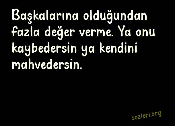 Başkalarına olduğundan fazla değer verme. Ya onu kaybedersin ya kendini mahvedersin. ( Duygusal Aşk )