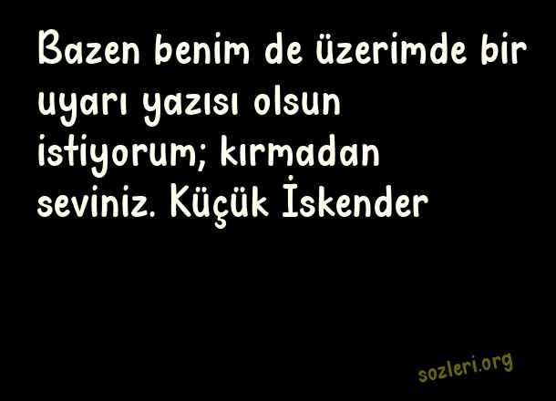 Bazen benim de üzerimde bir uyarı yazısı olsun istiyorum; kırmadan seviniz. Küçük İskender ( Felsefi Aşk )