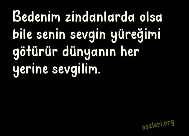 Bedenim zindanlarda olsa bile senin sevgin yüreğimi götürür dünyanın her yerine sevgilim. ( Sevgiliye Yeni Anlamlı Güzel Aşk )