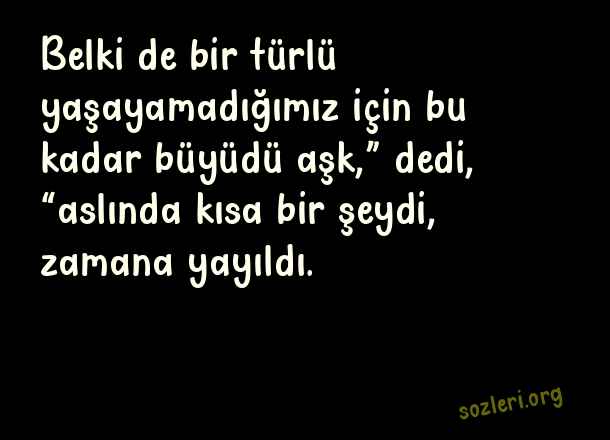 Belki de bir türlü yaşayamadığımız için bu kadar büyüdü aşk,” dedi, “aslında kısa bir şeydi, zamana yayıldı. ( Garip Aşk )