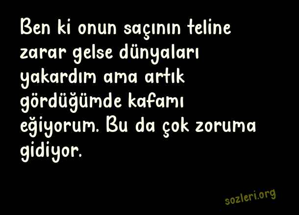 Ben ki onun saçının teline zarar gelse dünyaları yakardım ama artık gördüğümde kafamı eğiyorum. Bu da çok zoruma gidiyor. ( Aşk Acısı )