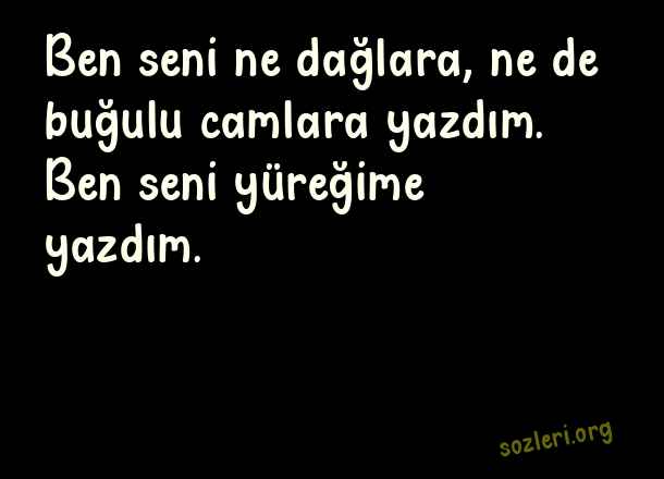 Ben seni ne dağlara, ne de buğulu camlara yazdım. Ben seni yüreğime yazdım. ( Sevgiliye Söylenecek En Güzel Aşk )