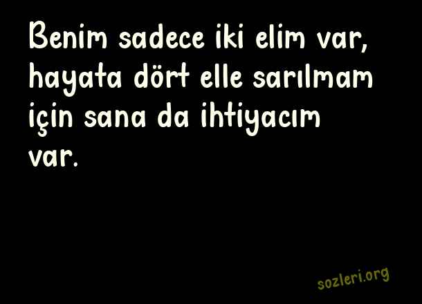 Benim sadece iki elim var, hayata dört elle sarılmam için sana da ihtiyacım var. ( Harika Aşk )