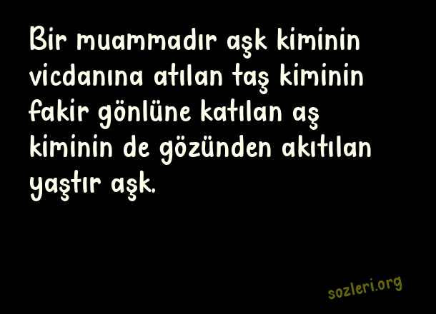 Bir muammadır aşk kiminin vicdanına atılan taş kiminin fakir gönlüne katılan aş kiminin de gözünden akıtılan yaştır aşk. ( Damar Aşk )