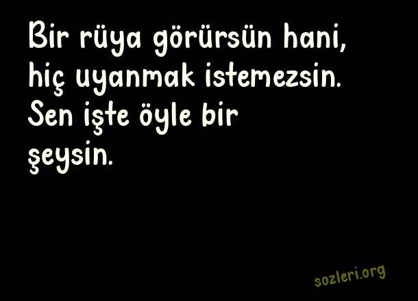 Bir rüya görürsün - En Son Aşk Sözleri .. Bir rüya görürsün hani, hiç uyanmak istemezsin. Sen işte öyle bir şeysin. ( En Son Aşk )