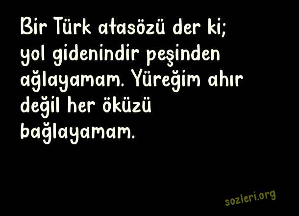 Bir Türk atasözü der ki; yol gidenindir peşinden ağlayamam. Yüreğim ahır değil her öküzü bağlayamam. ( Öküz Aşk )