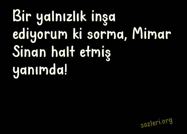 Bir yalnızlık inşa - Whatsapp Aşk Sözleri .. Bir yalnızlık inşa ediyorum ki sorma, Mimar Sinan halt etmiş yanımda! ( Whatsapp Aşk )