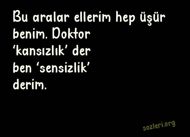 Bu aralar ellerim - Aşk Kavanozu Sözleri .. Bu aralar ellerim hep üşür benim. Doktor ‘kansızlık’ der ben ‘sensizlik’ derim. ( Aşk Kavanozu )