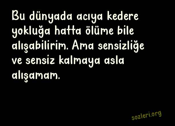 Bu dünyada acıya kedere yokluğa hatta ölüme bile alışabilirim. Ama sensizliğe ve sensiz kalmaya asla alışamam. ( Aşkıma Güzel Sözler )