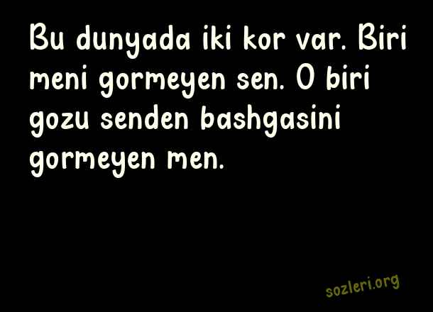 Bu dunyada iki kor var. Biri meni gormeyen sen. O biri gozu senden bashgasini gormeyen men. ( Azerice Aşk )
