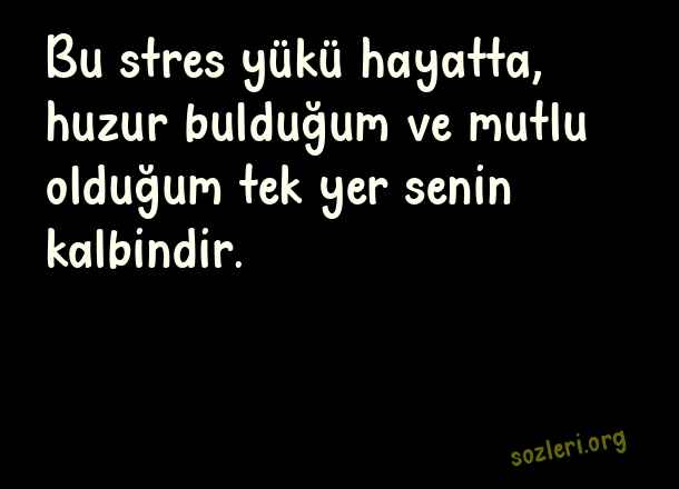 Bu stres yükü hayatta, huzur bulduğum ve mutlu olduğum tek yer senin kalbindir. ( Eşe Aşk )